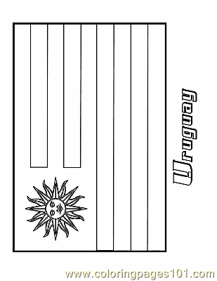 Showing 12 coloring pages related to uruguay. Begin with making the first half stripe cornflower blue.